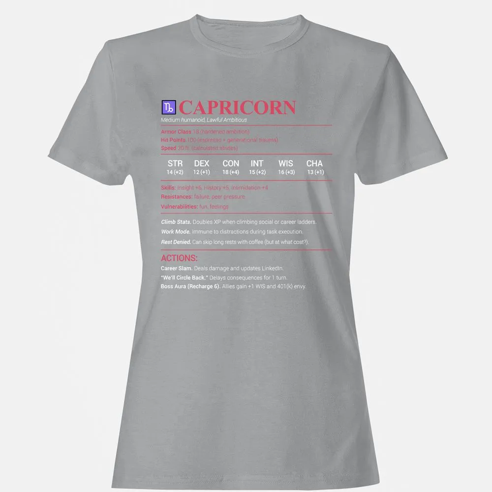 Capricorn Stats Women's T-Shirt - Ash - 2