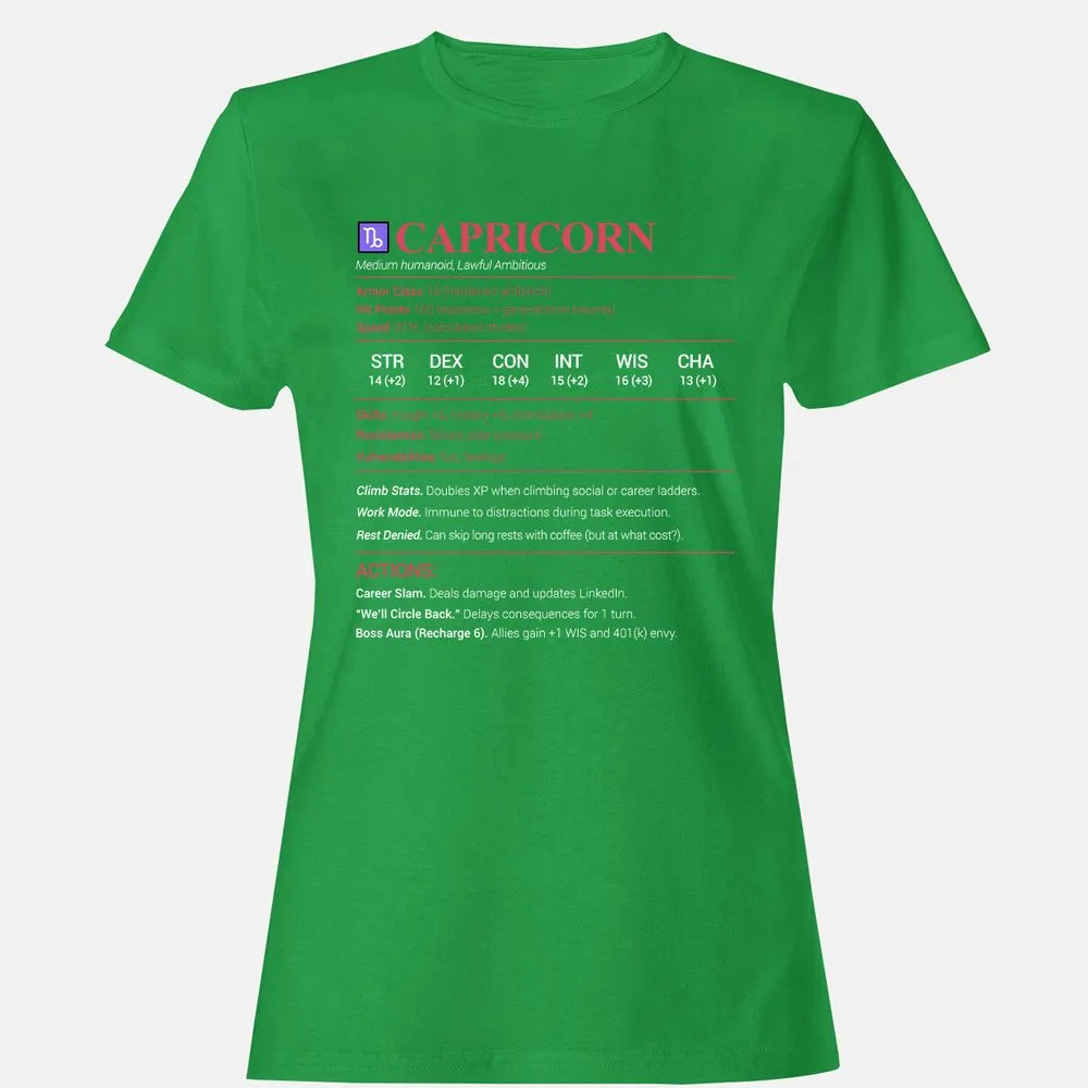 Capricorn Stats Women's T-Shirt - Irish Green - 7