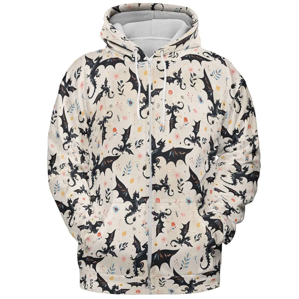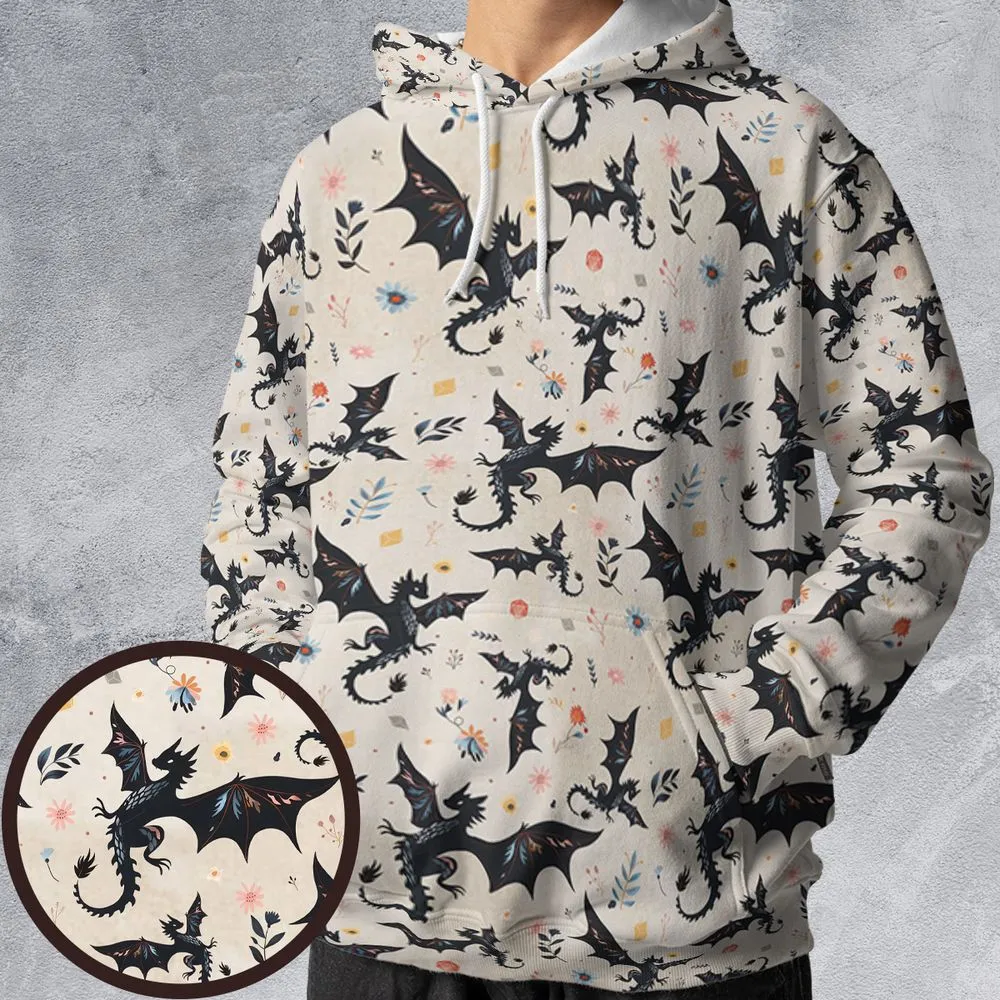 Floral DnD Dragon Pattern All-over Print Hoodie