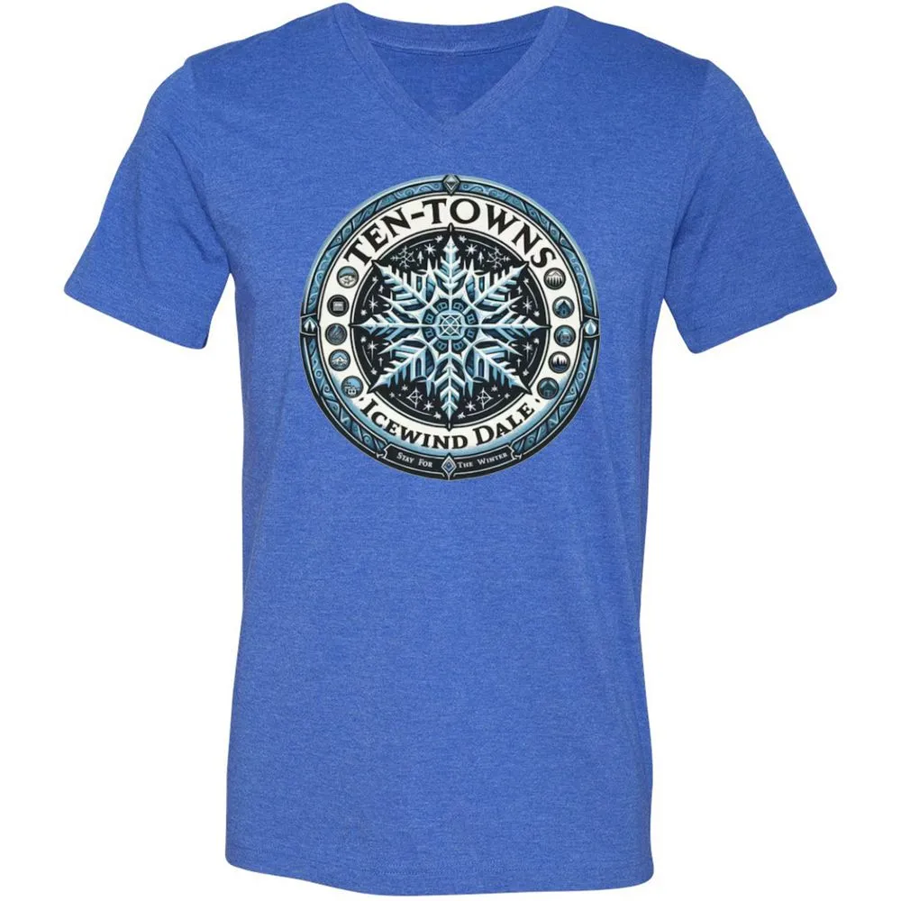 Ten-Towns Icewind Dale Unisex V-Neck T-Shirt - Heather True Royal - 14