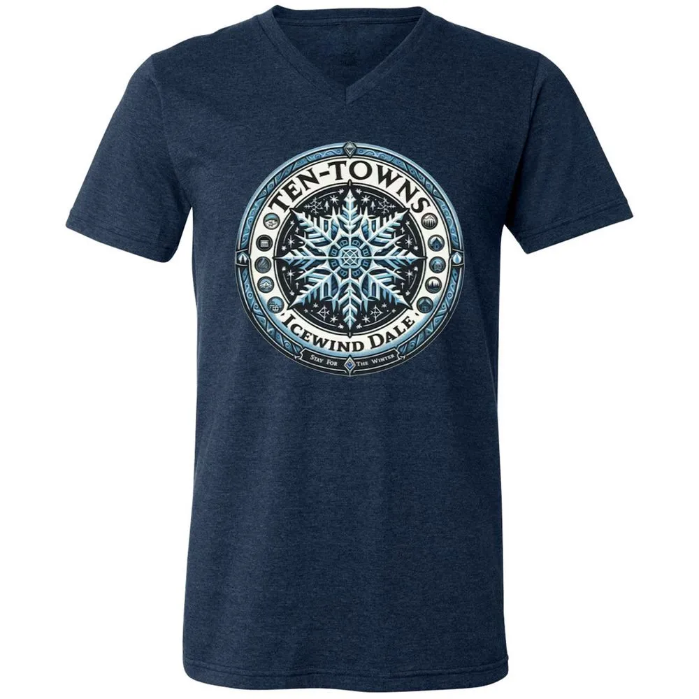Ten-Towns Icewind Dale Unisex V-Neck T-Shirt - Heather Navy - 15