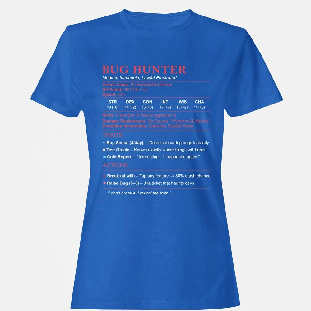 Tester Stats (Bug Hunter) Women's T-Shirt - Royal - 14