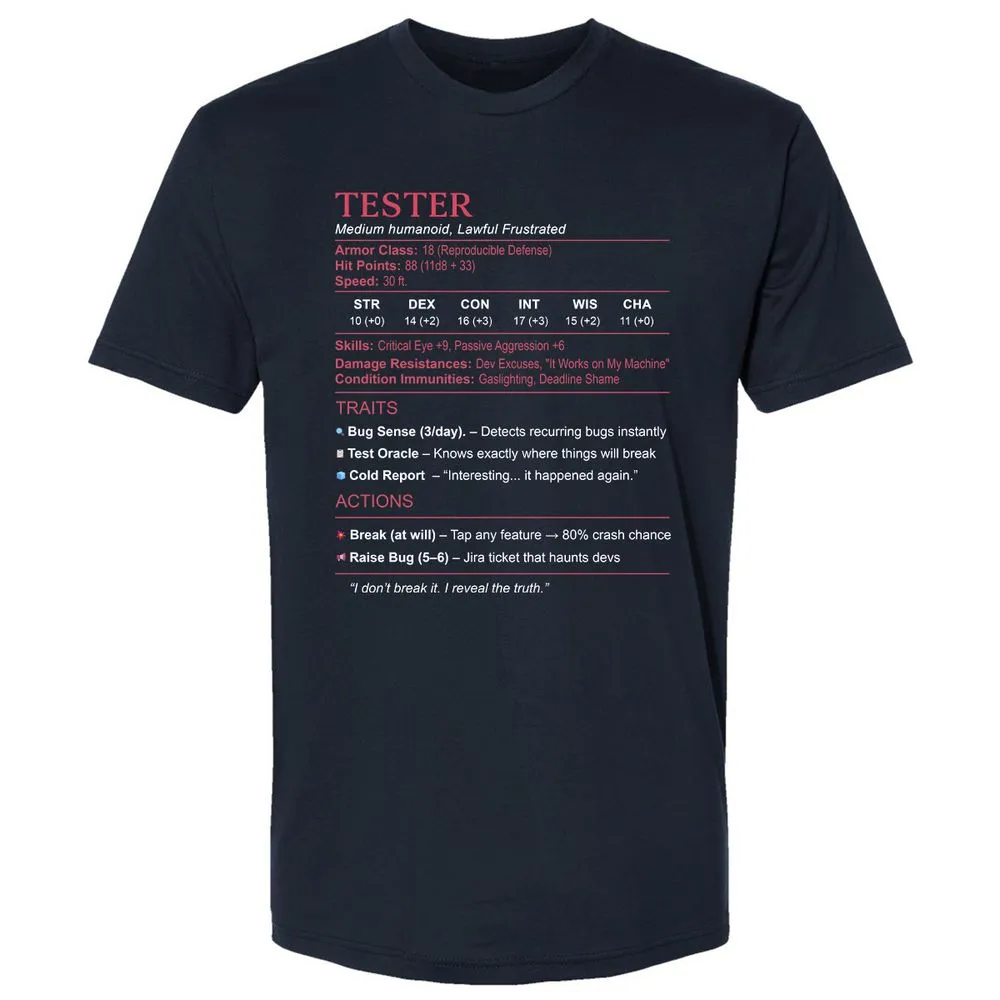 Tester Stats Premium Unisex T-Shirt - Midnight Navy - 2