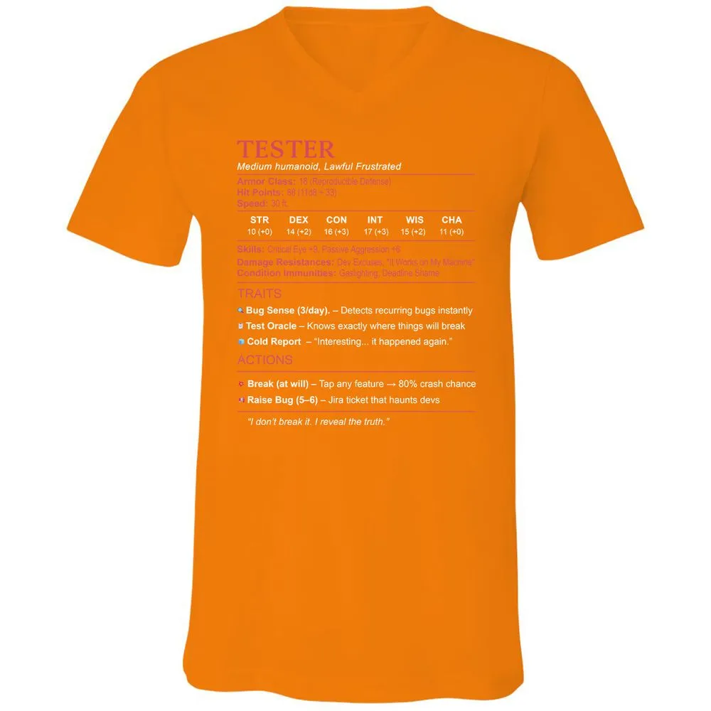 Tester Stats Unisex V-Neck T-Shirt - Orange - 11