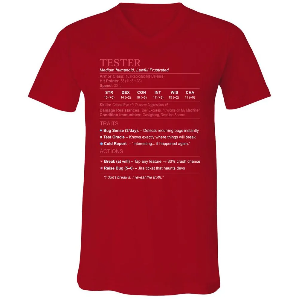 Tester Stats Unisex V-Neck T-Shirt - Red - 3