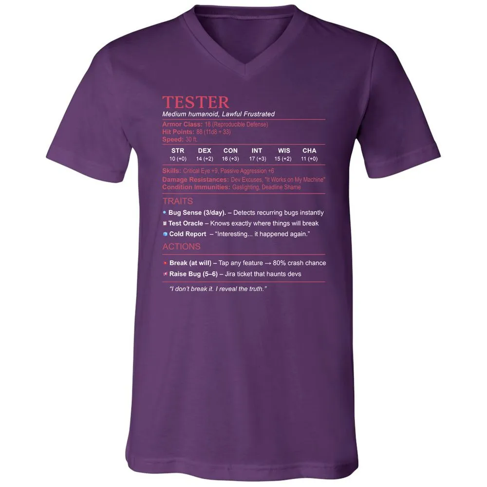 Tester Stats Unisex V-Neck T-Shirt - Deep Heather - 13