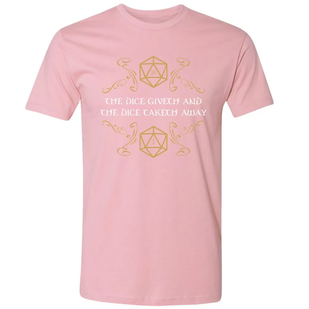 The Dice Giveth and Taketh Away Natural 20 and Critical Fail Premium Unisex T-Shirt - Light Pink - 3
