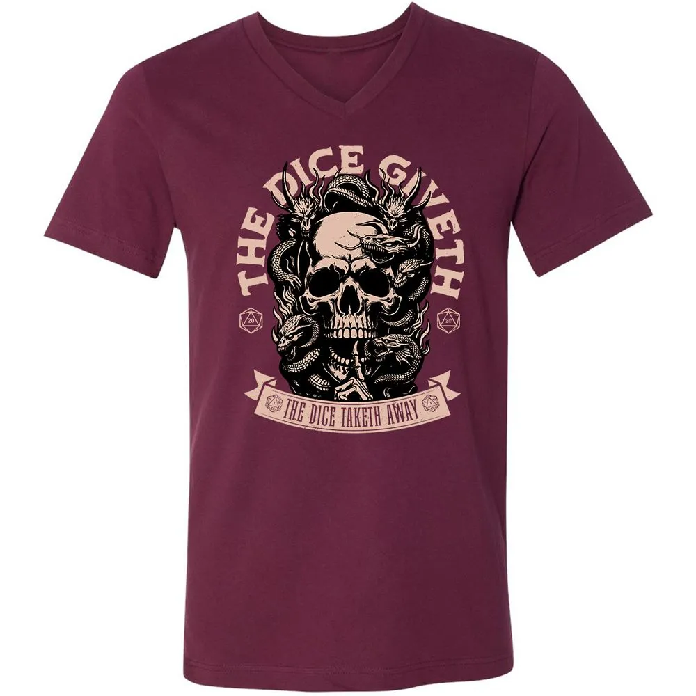 The Dice Giveth The Dice Taketh Away Unisex V-Neck T-Shirt