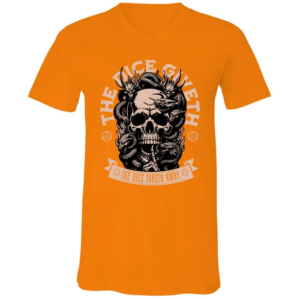 The Dice Giveth The Dice Taketh Away Unisex V-Neck T-Shirt - Orange - 11