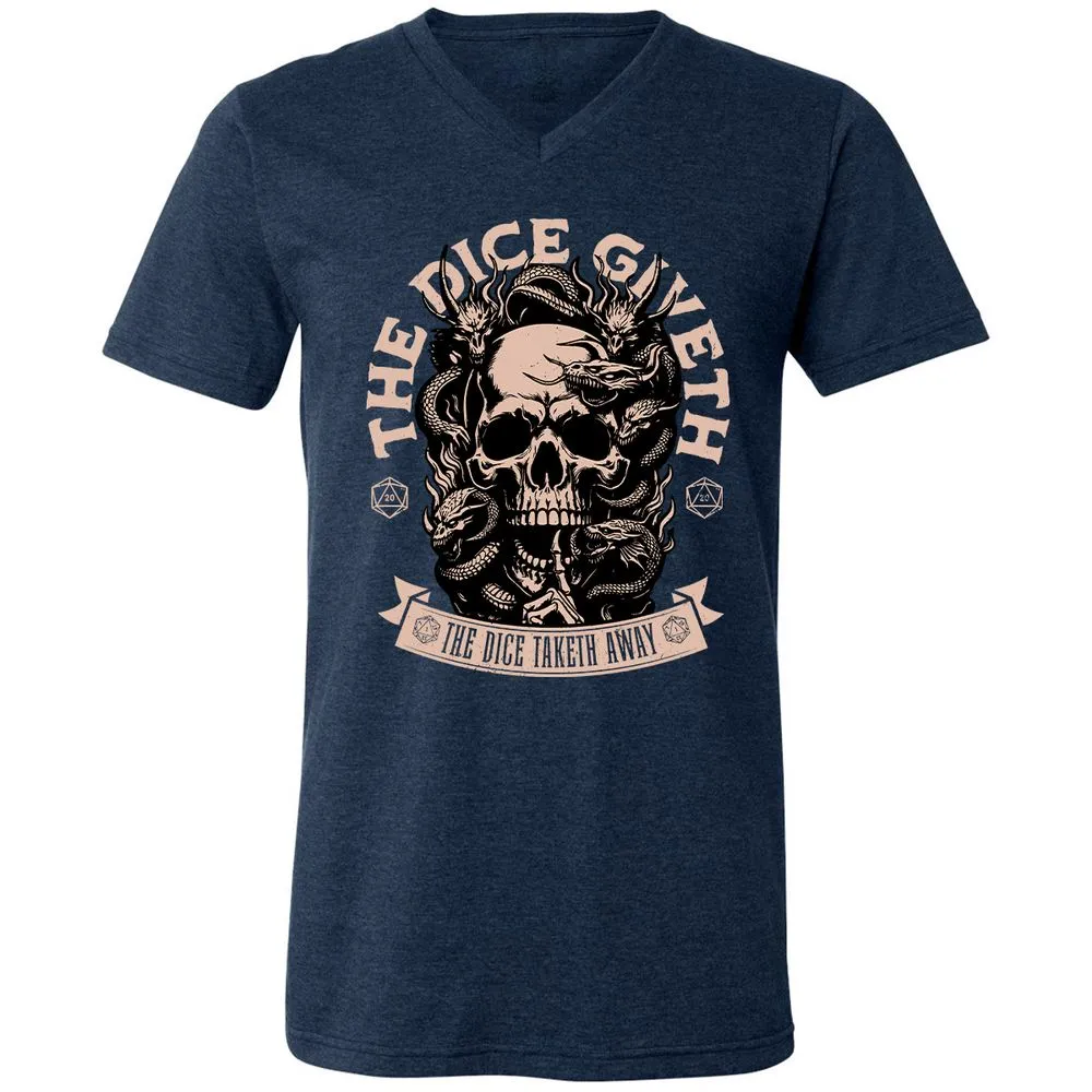 The Dice Giveth The Dice Taketh Away Unisex V-Neck T-Shirt - Heather Navy - 15