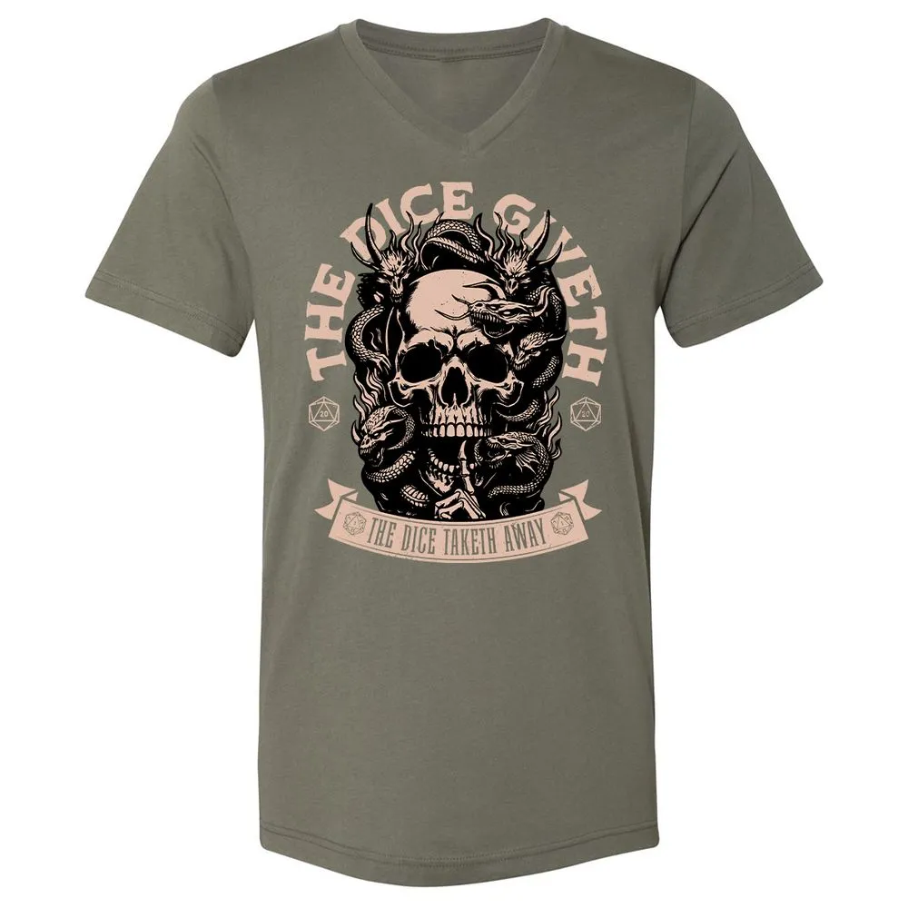 The Dice Giveth The Dice Taketh Away Unisex V-Neck T-Shirt - Military Green - 10