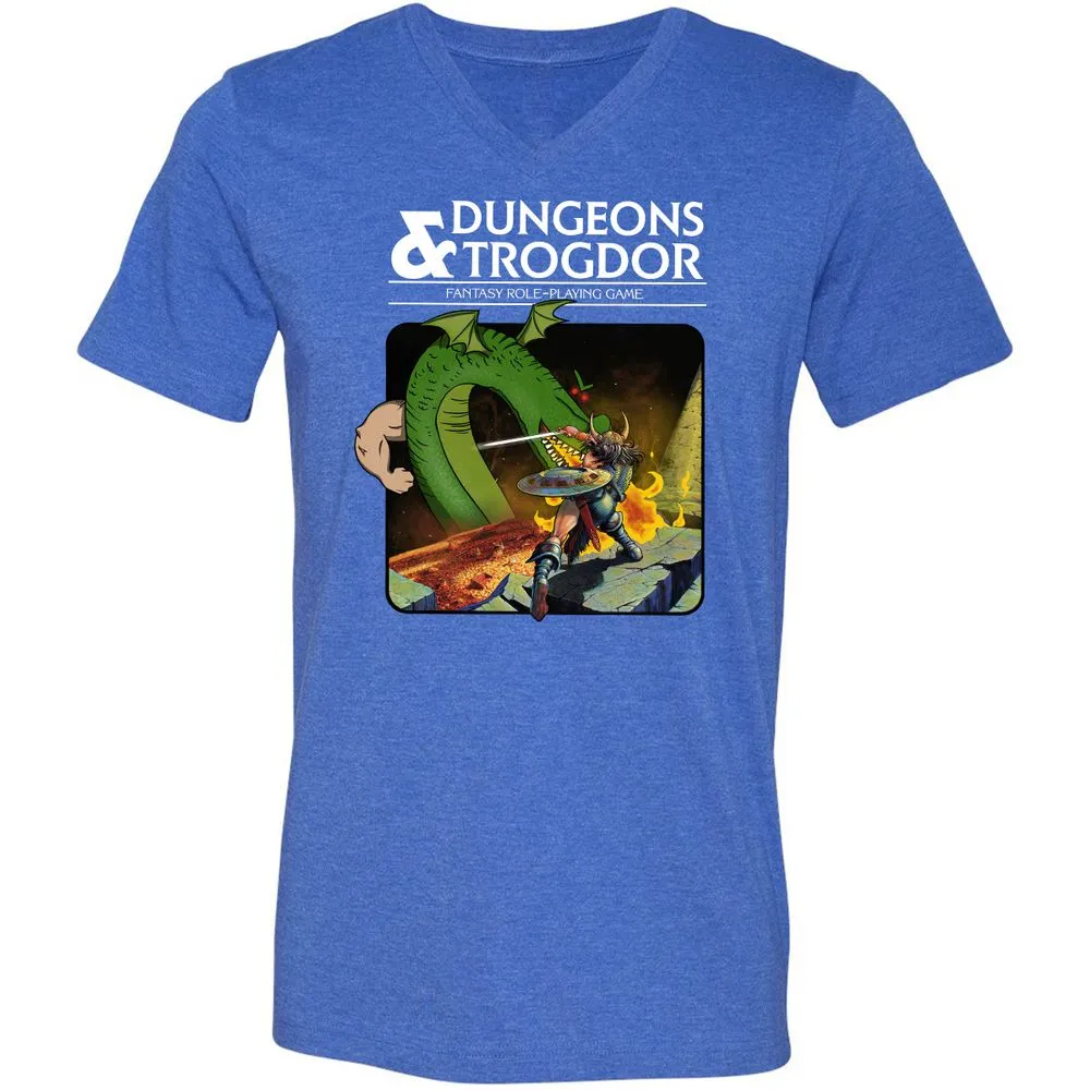 Trogdor Unisex V-Neck T-Shirt - Heather True Royal - 14