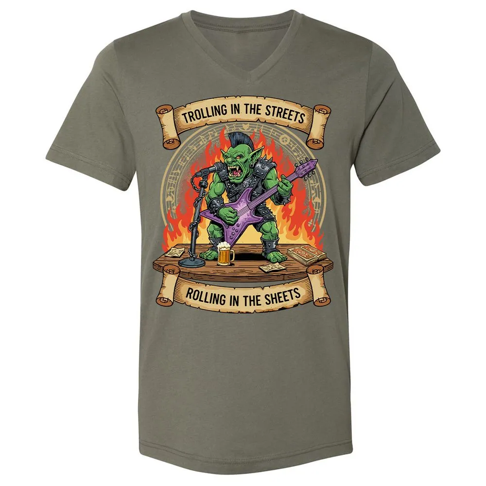 Trolling in the Streets Unisex V-Neck T-Shirt - Military Green - 10