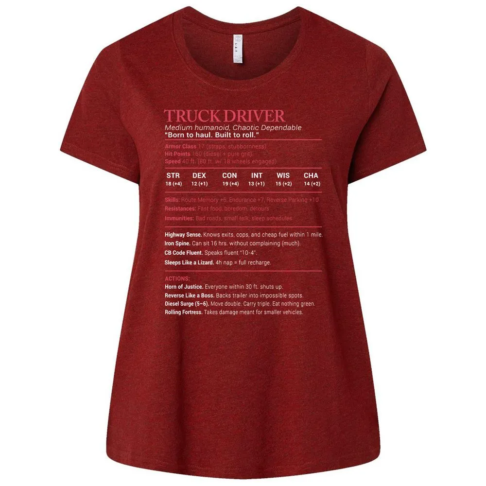 Truck Driver Stats Ladies Curvy Jersey - Cardinal - 10