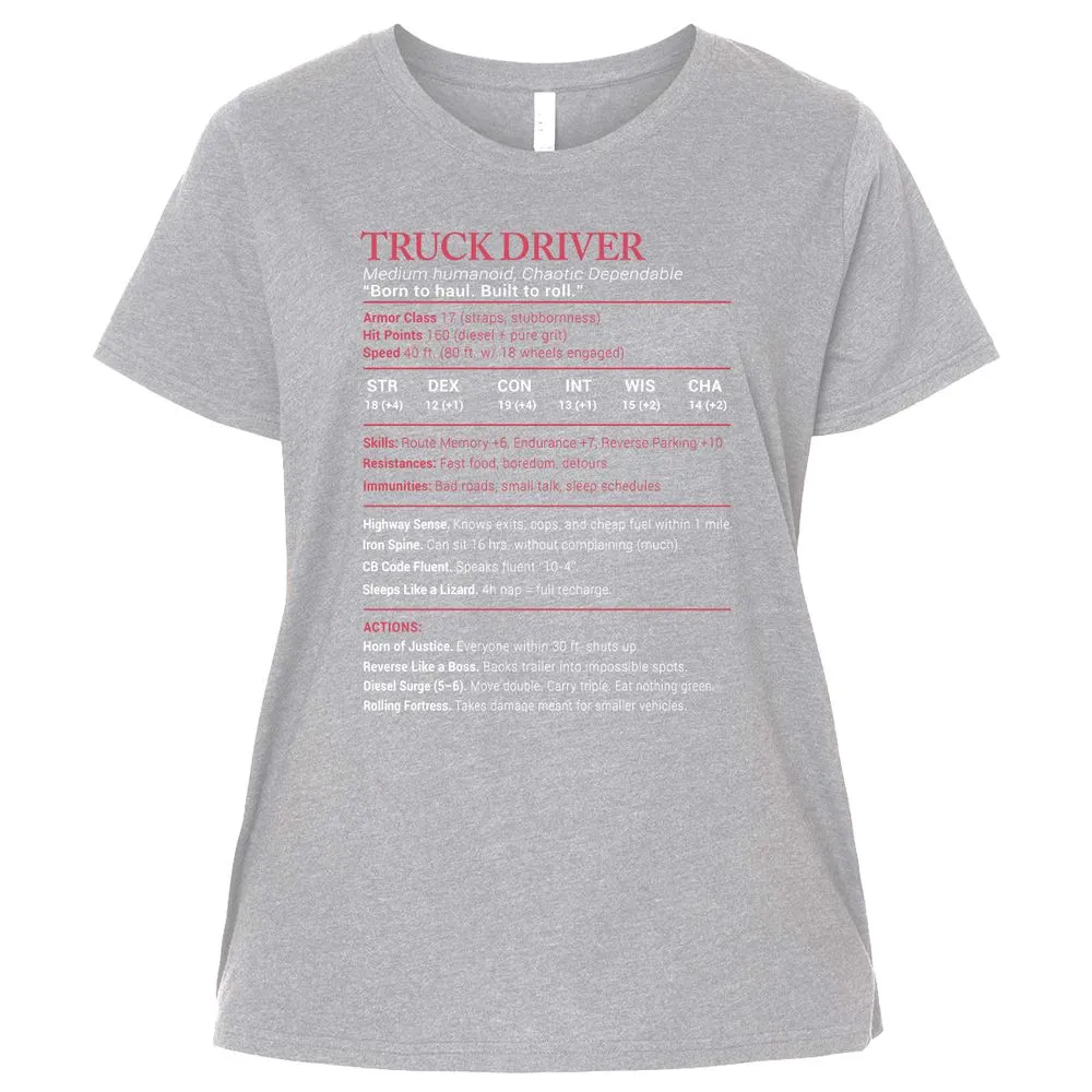 Truck Driver Stats Ladies Curvy Jersey - Granite Heather - 9