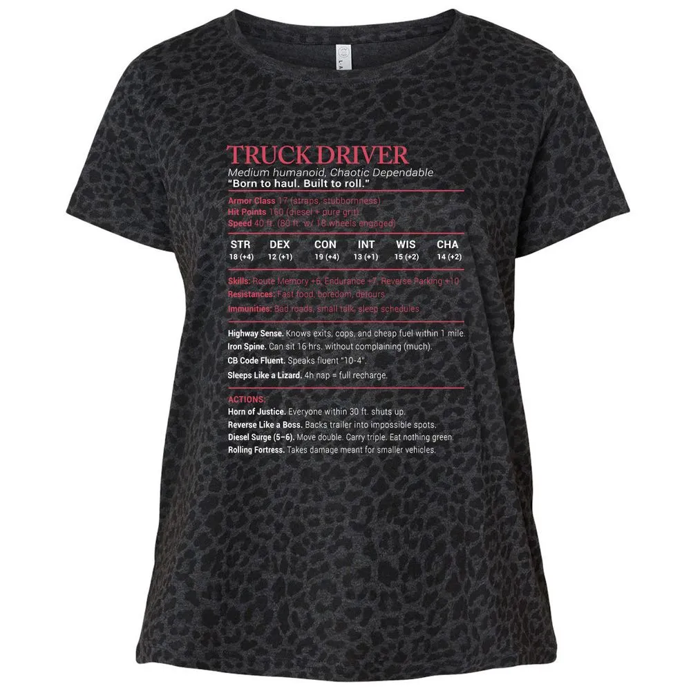 Truck Driver Stats Ladies Curvy Jersey - Black Leopard - 11