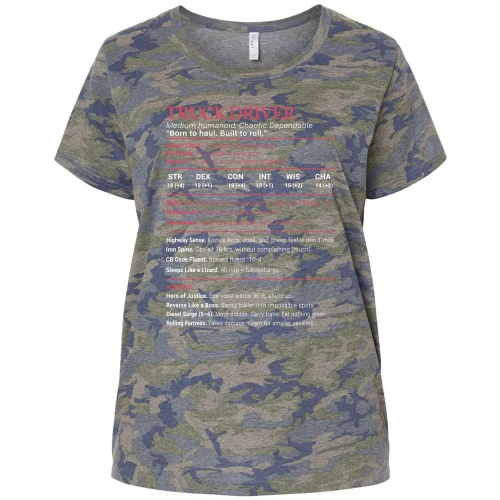 Truck Driver Stats Ladies Curvy Jersey - Vintage Camo - 5