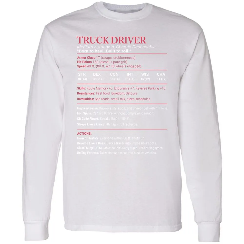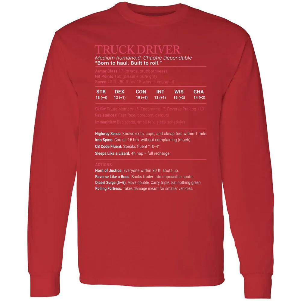 Truck Driver Stats Long Sleeve T-Shirt - Red - 14