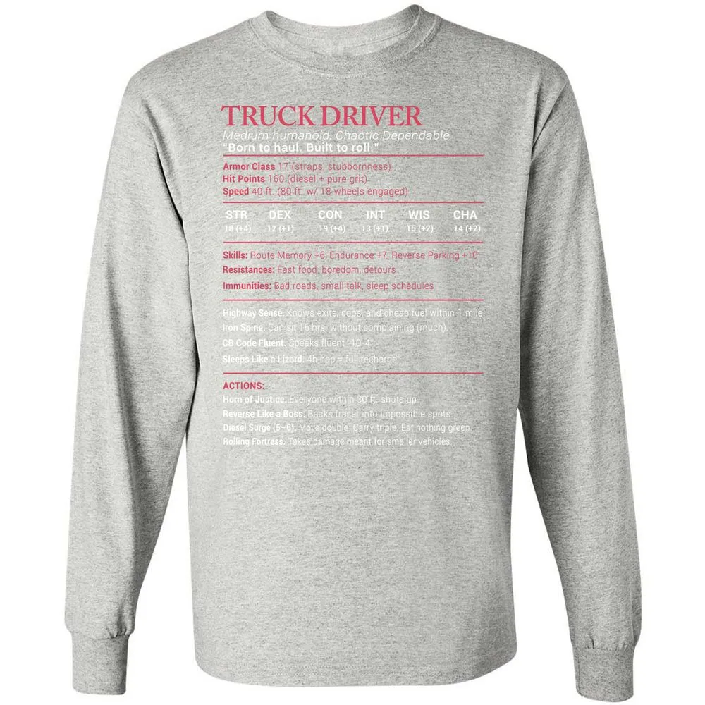 Truck Driver Stats Long Sleeve T-Shirt - Ash - 7