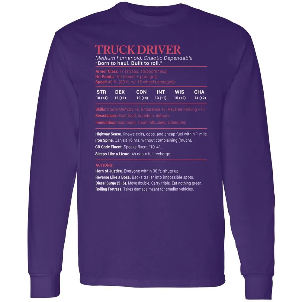 Truck Driver Stats Long Sleeve T-Shirt - Purple - 13