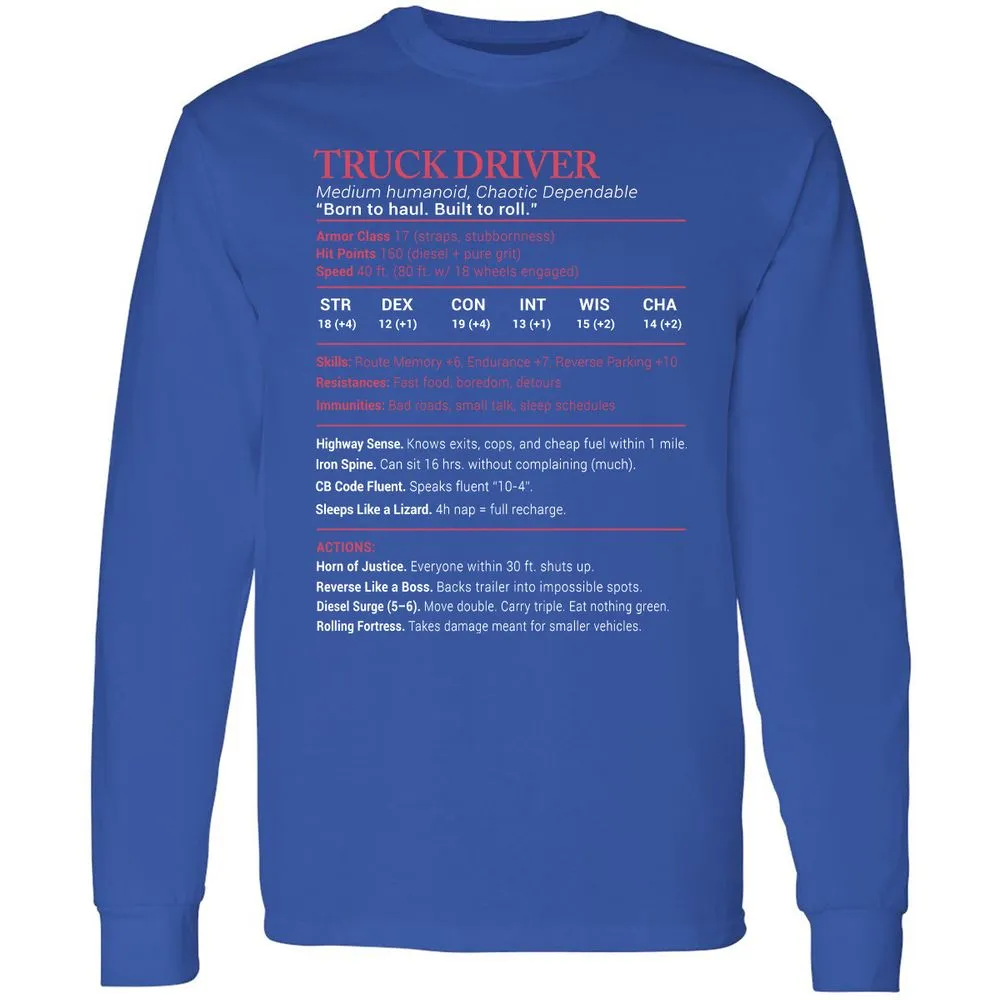 Truck Driver Stats Long Sleeve T-Shirt - Royal - 8