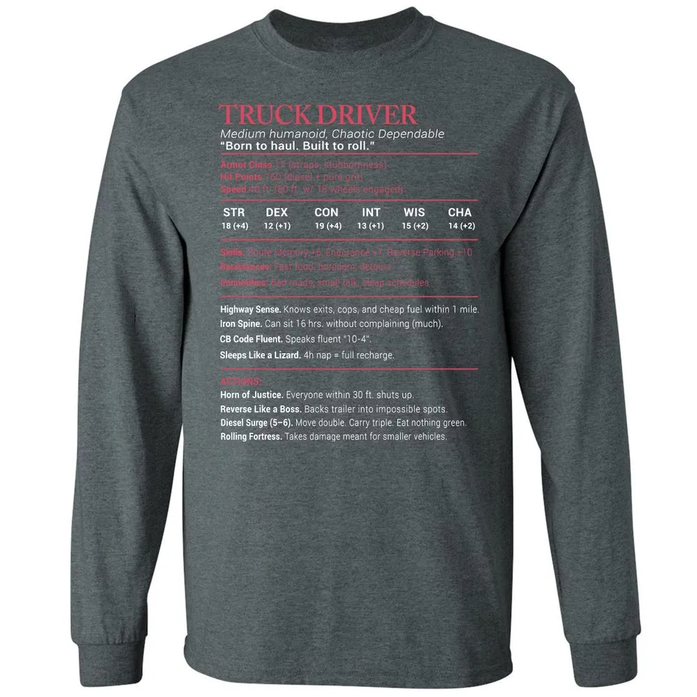 Truck Driver Stats Long Sleeve T-Shirt - Dark Heather - 15