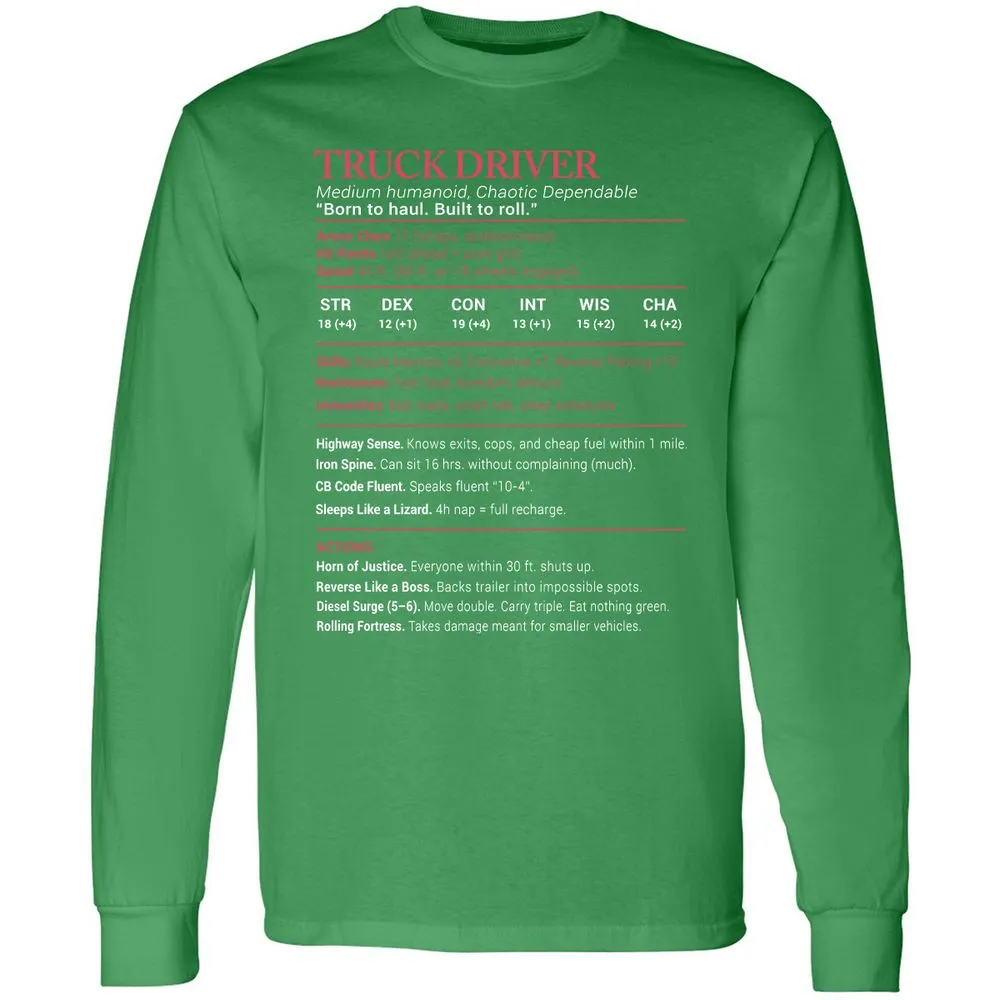 Truck Driver Stats Long Sleeve T-Shirt - Irish Green - 10