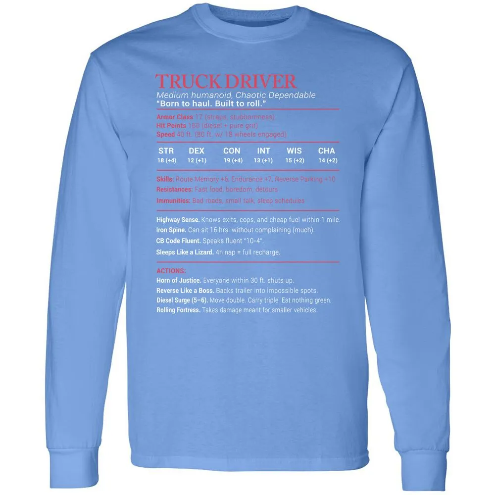 Truck Driver Stats Long Sleeve T-Shirt - Carolina Blue - 12