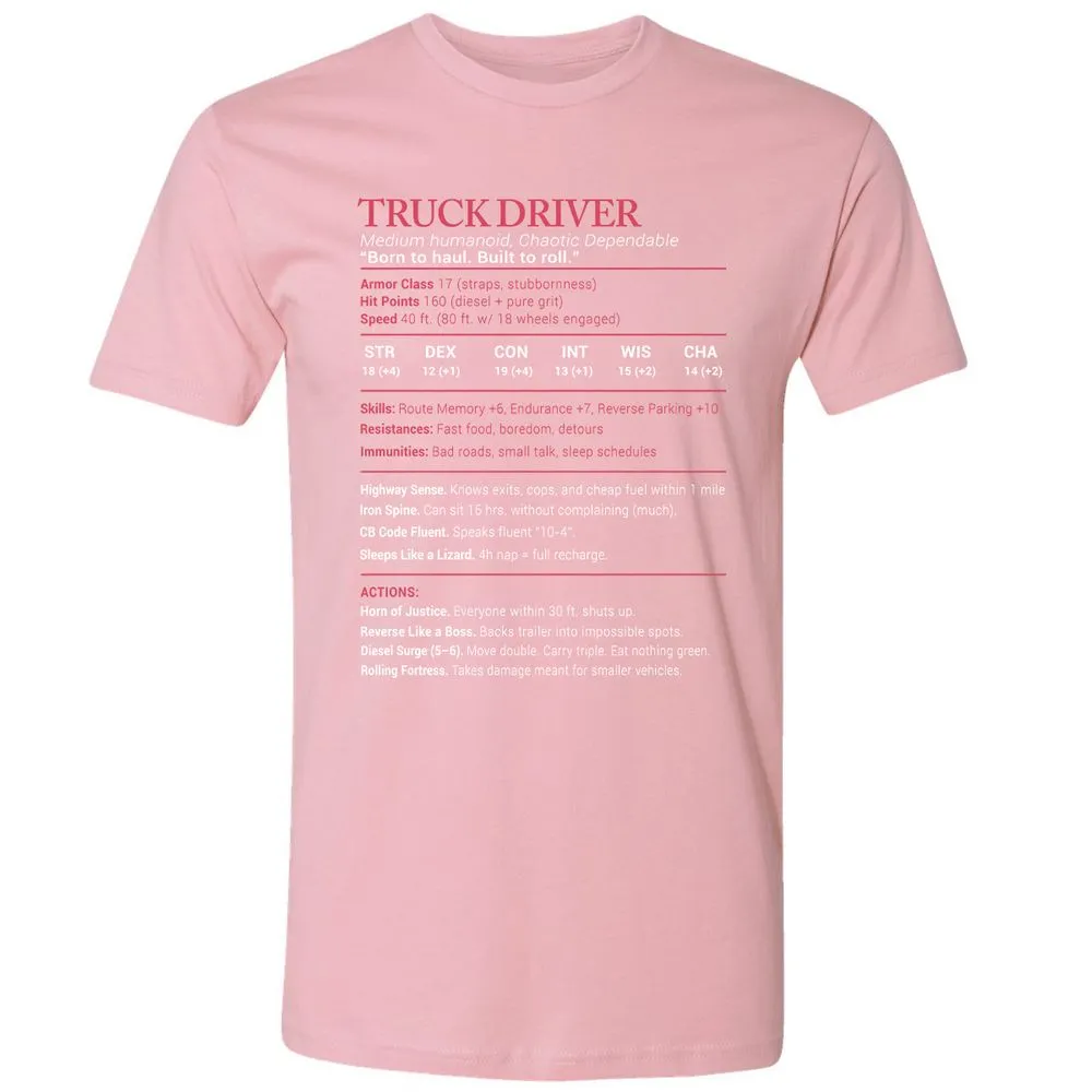 Truck Driver Stats Premium Unisex T-Shirt - Light Pink - 3