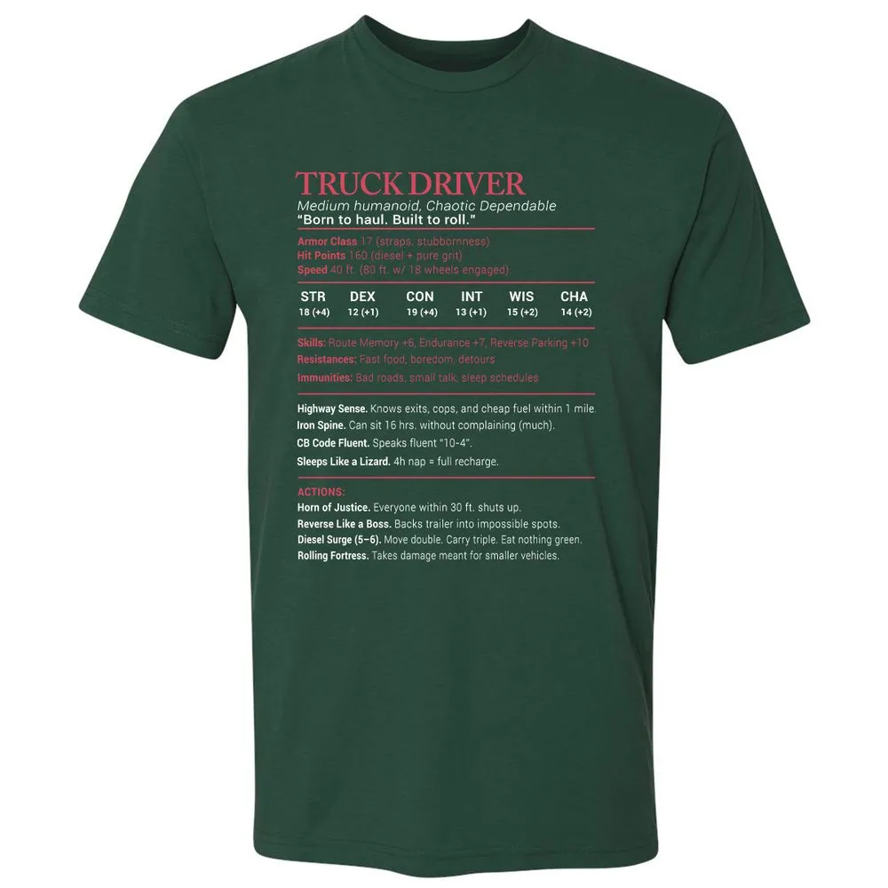 Truck Driver Stats Premium Unisex T-Shirt - Forest Green - 13
