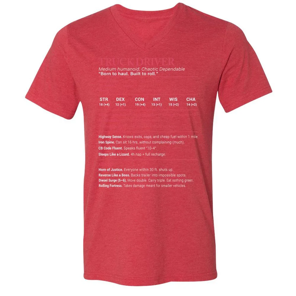 Truck Driver Stats Unisex V-Neck T-Shirt - Heather Red - 16