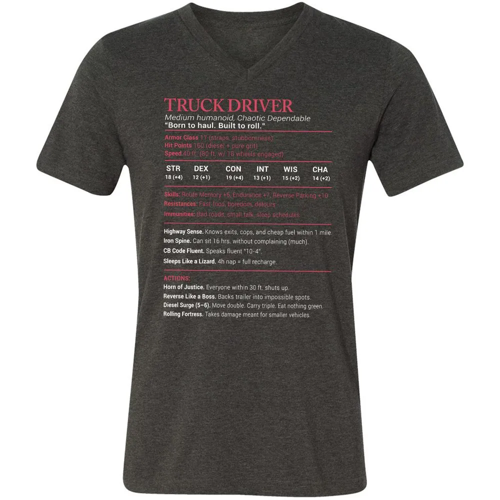 Truck Driver Stats Unisex V-Neck T-Shirt - Deep Heather - 13