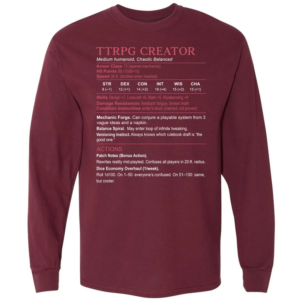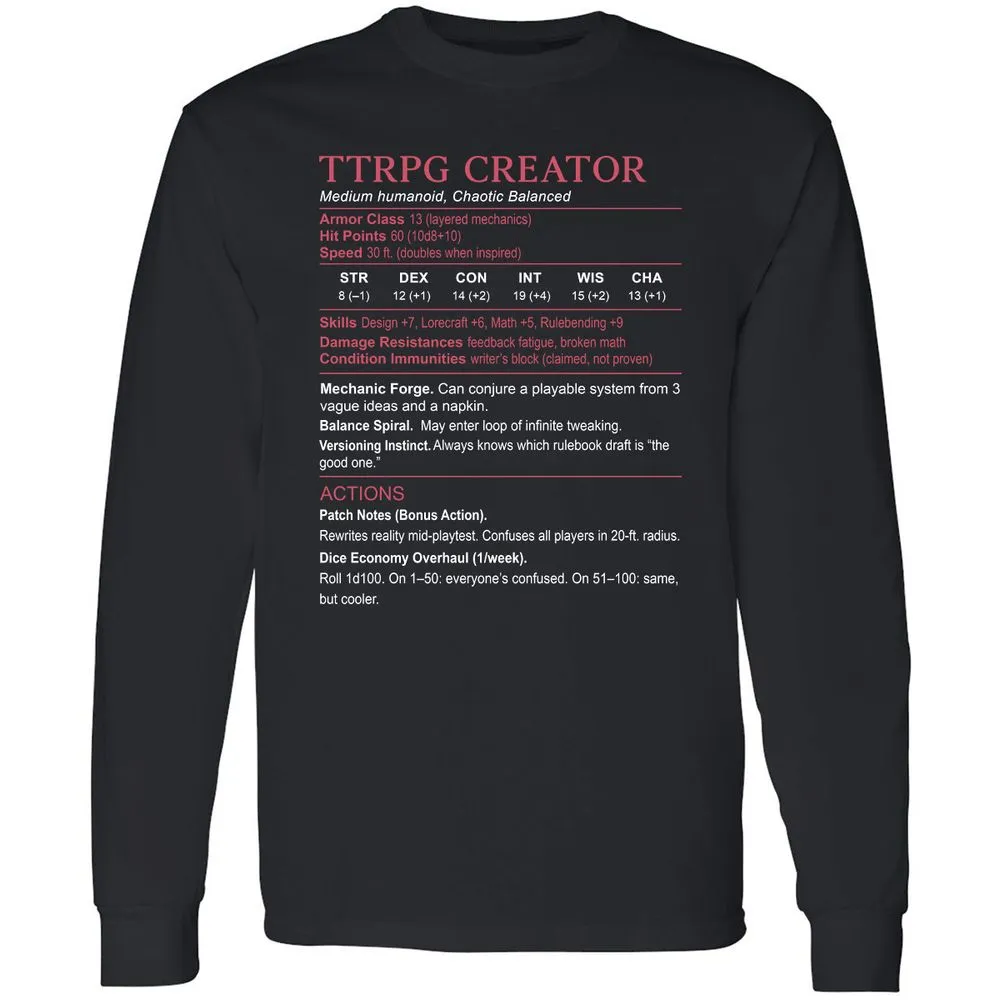 TTRPG Creator Stats Long Sleeve T-Shirt