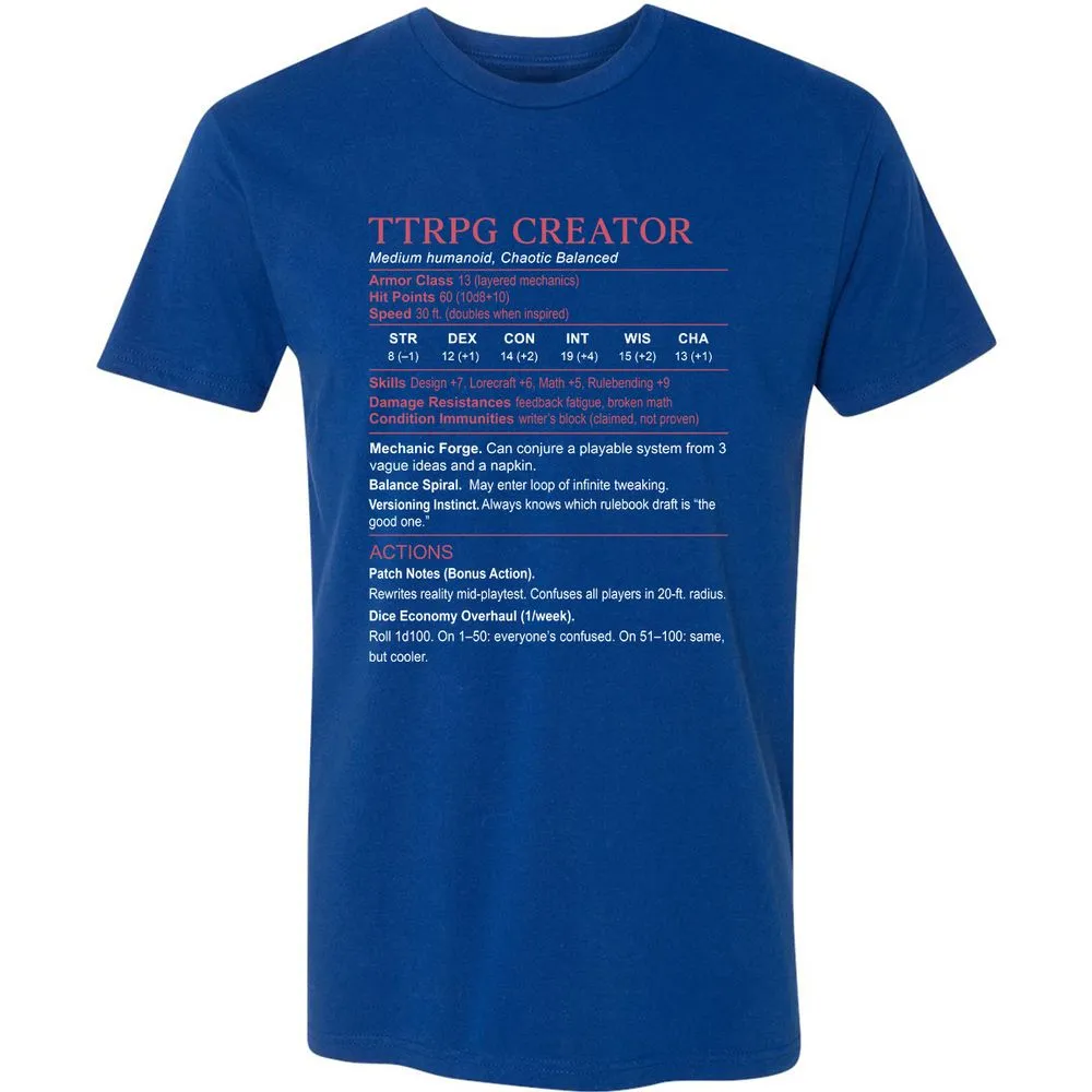 TTRPG Creator Stats Premium Unisex T-Shirt - Royal - 10