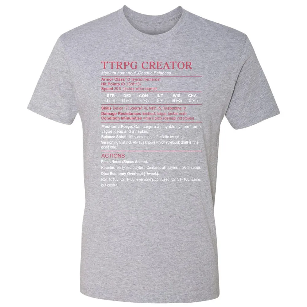 TTRPG Creator Stats Premium Unisex T-Shirt - Heather Grey - 9