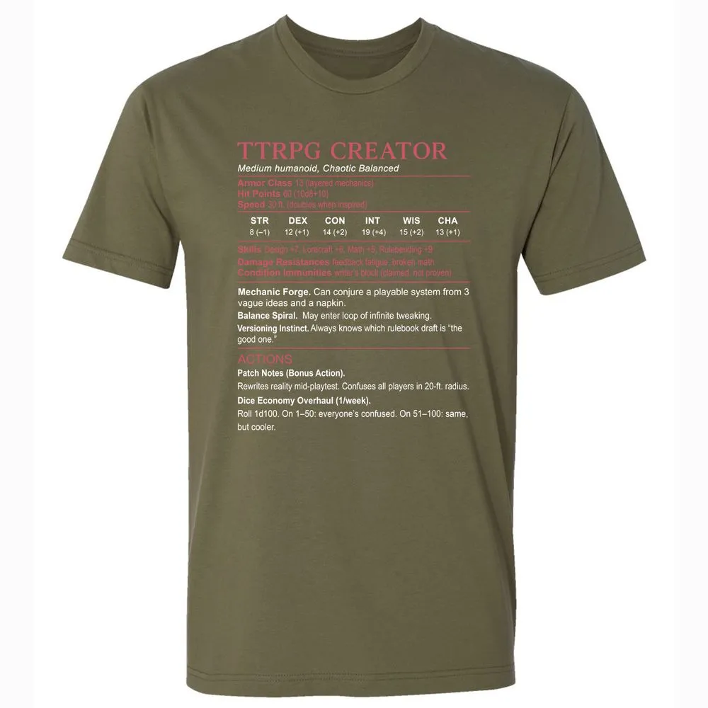 TTRPG Creator Stats Premium Unisex T-Shirt - Military Green - 5