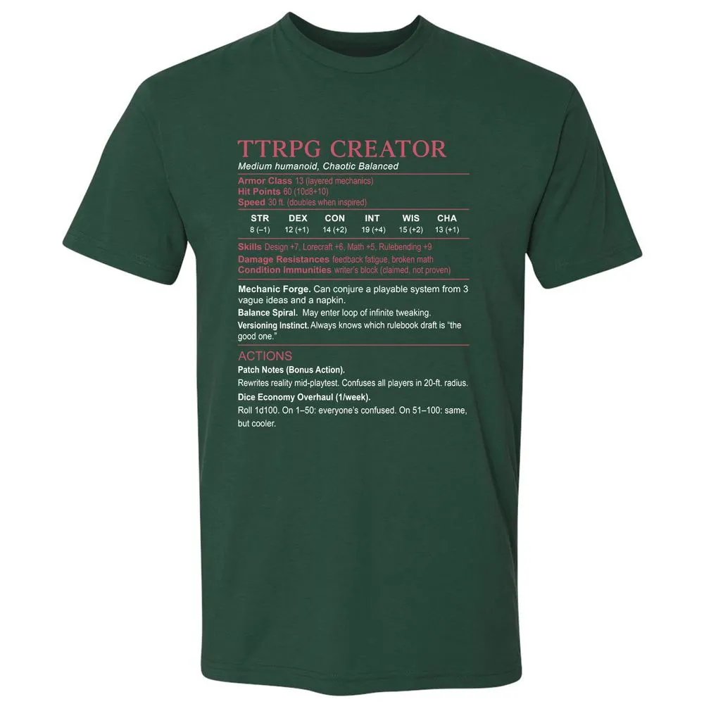 TTRPG Creator Stats Premium Unisex T-Shirt - Forest Green - 13