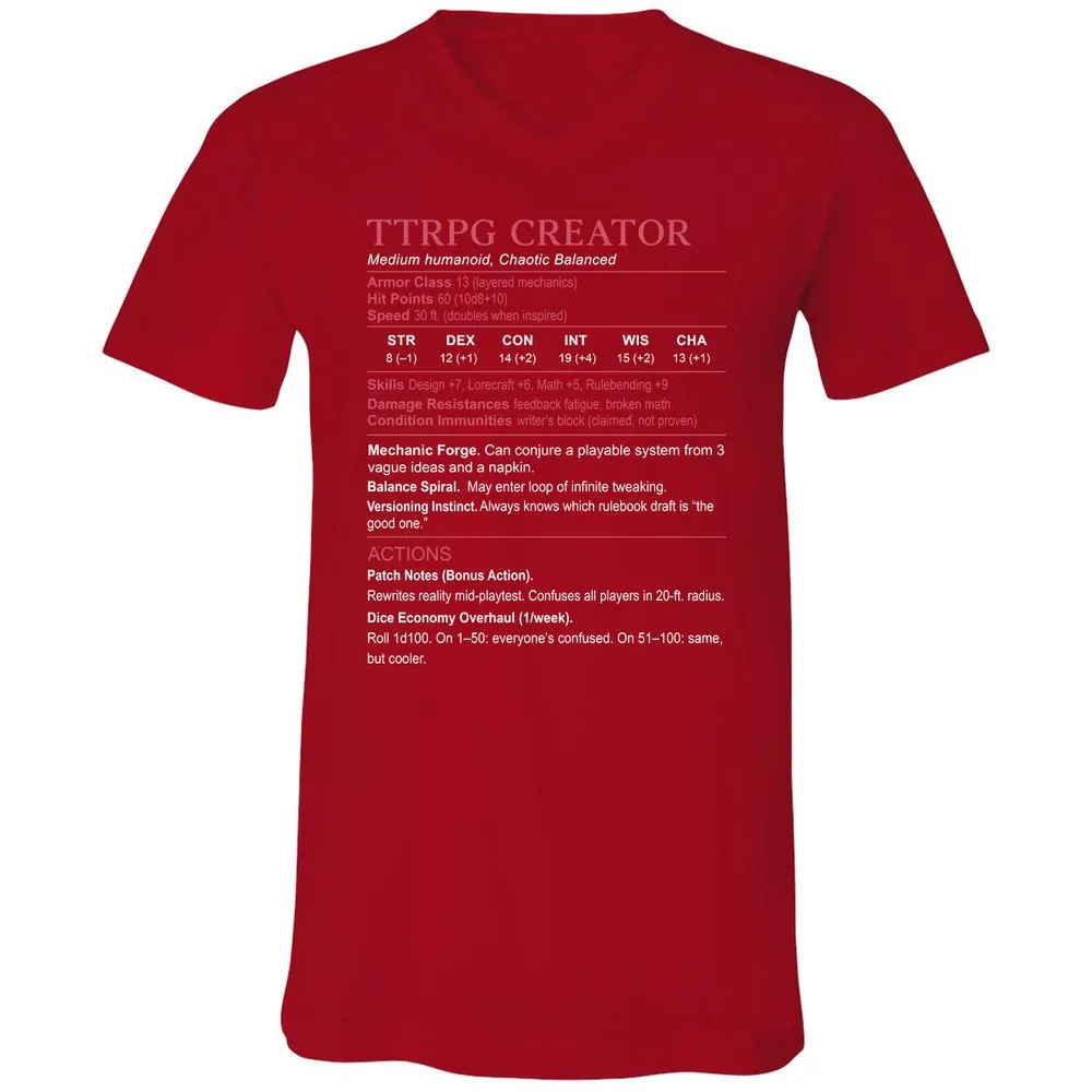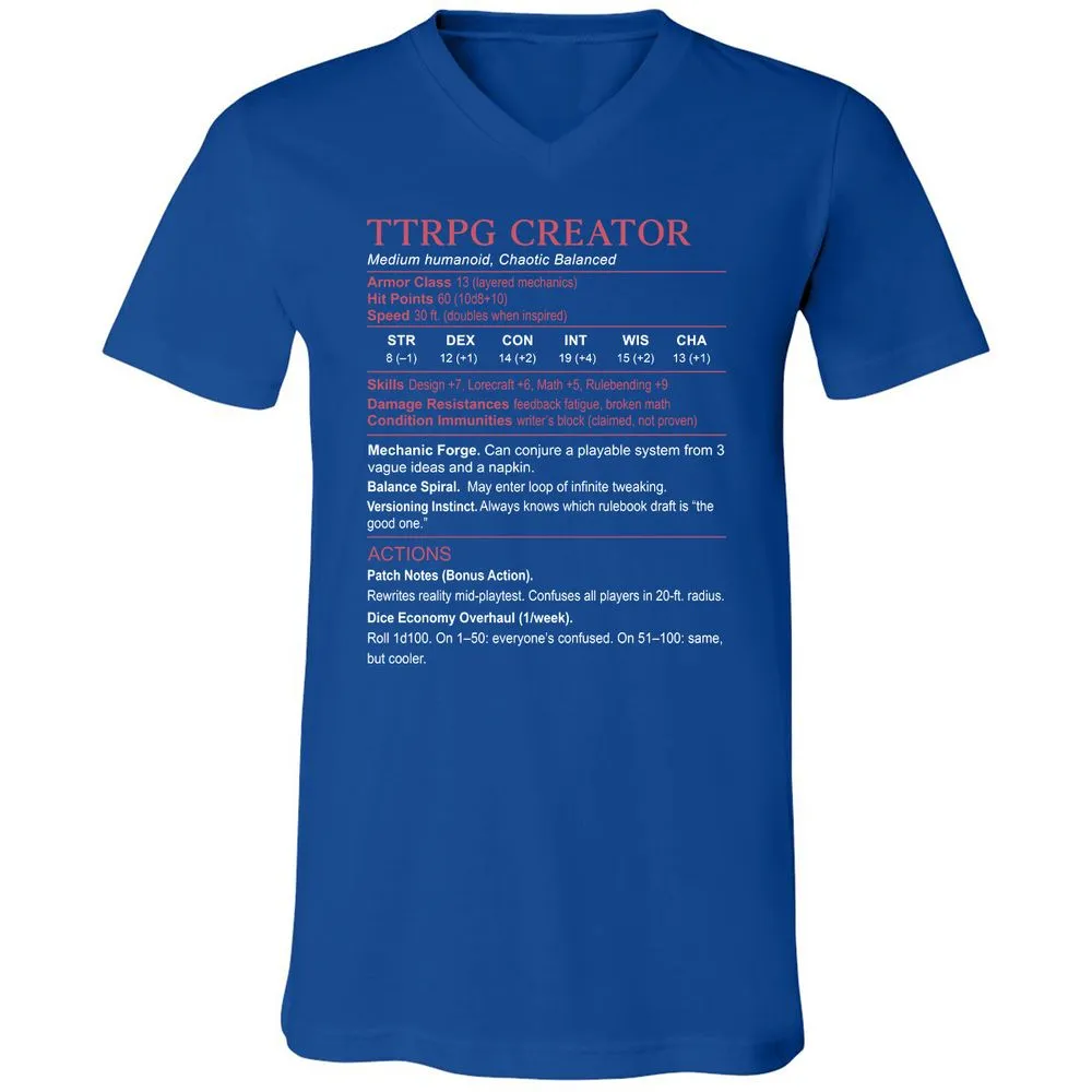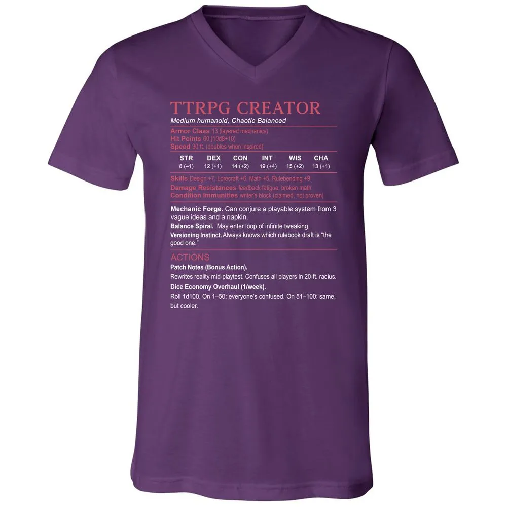 3. TTRPG Creator Stats Unisex V-Neck T-Shirt