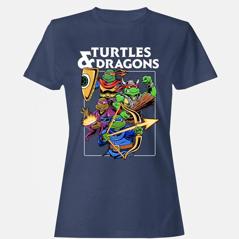 Turtles & Dragons Women's T-Shirt - Navy - 10