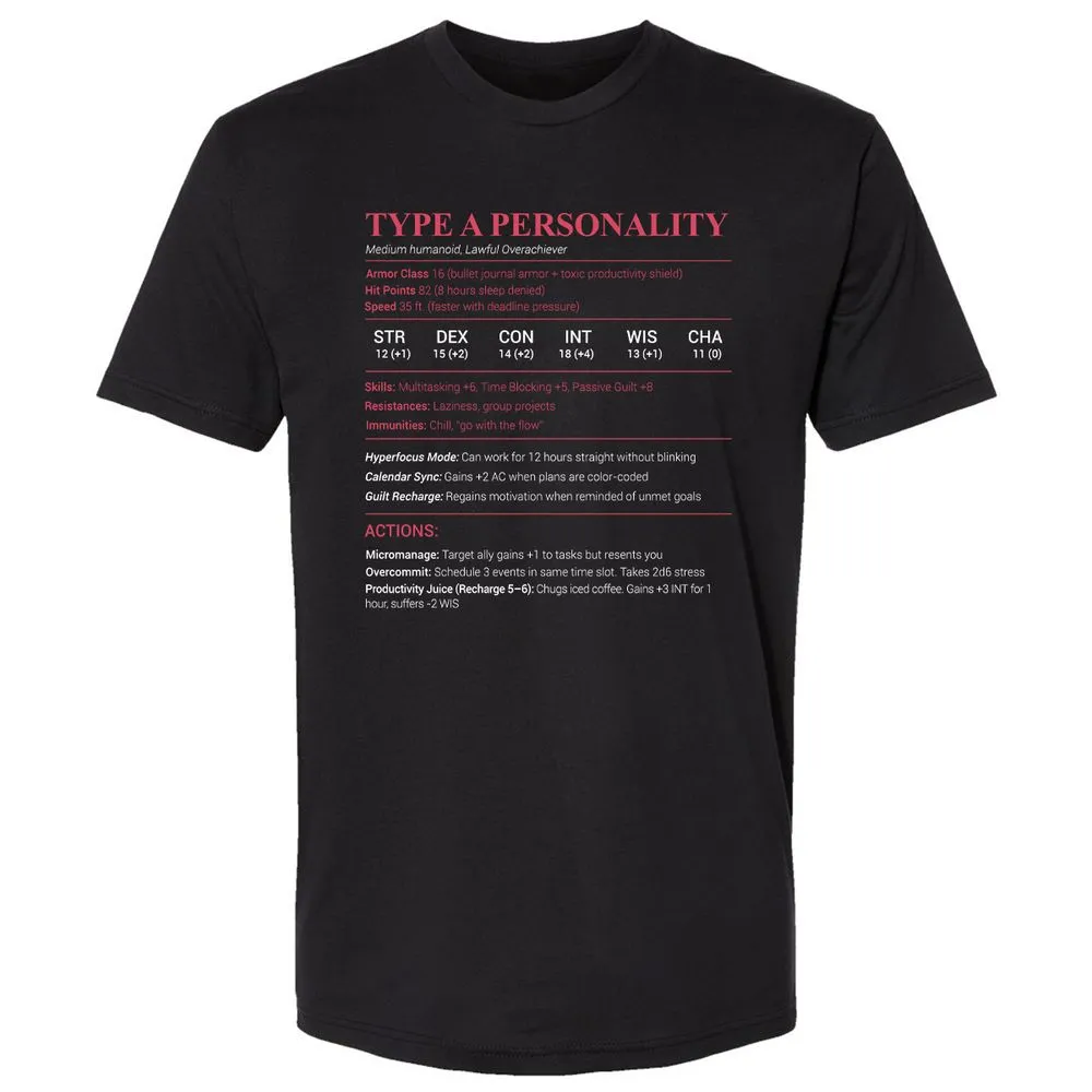 Type A Stats Premium Unisex T-Shirt - Black - 1