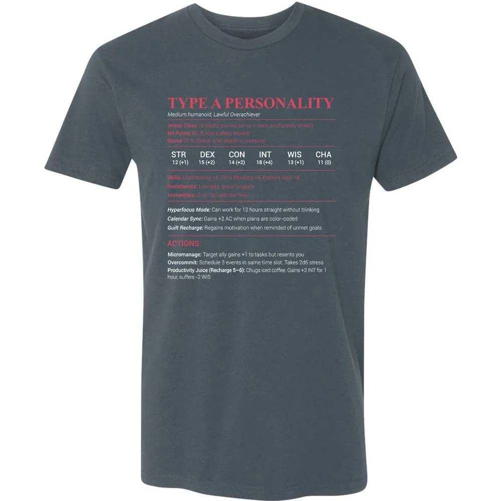 Type A Stats Premium Unisex T-Shirt - Heavy Metal - 8