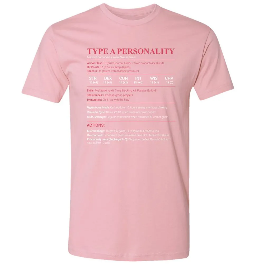 Type A Stats Premium Unisex T-Shirt - Light Pink - 3