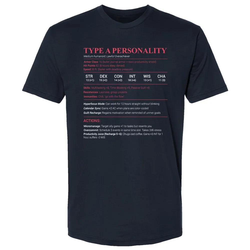 Type A Stats Premium Unisex T-Shirt - Midnight Navy - 2
