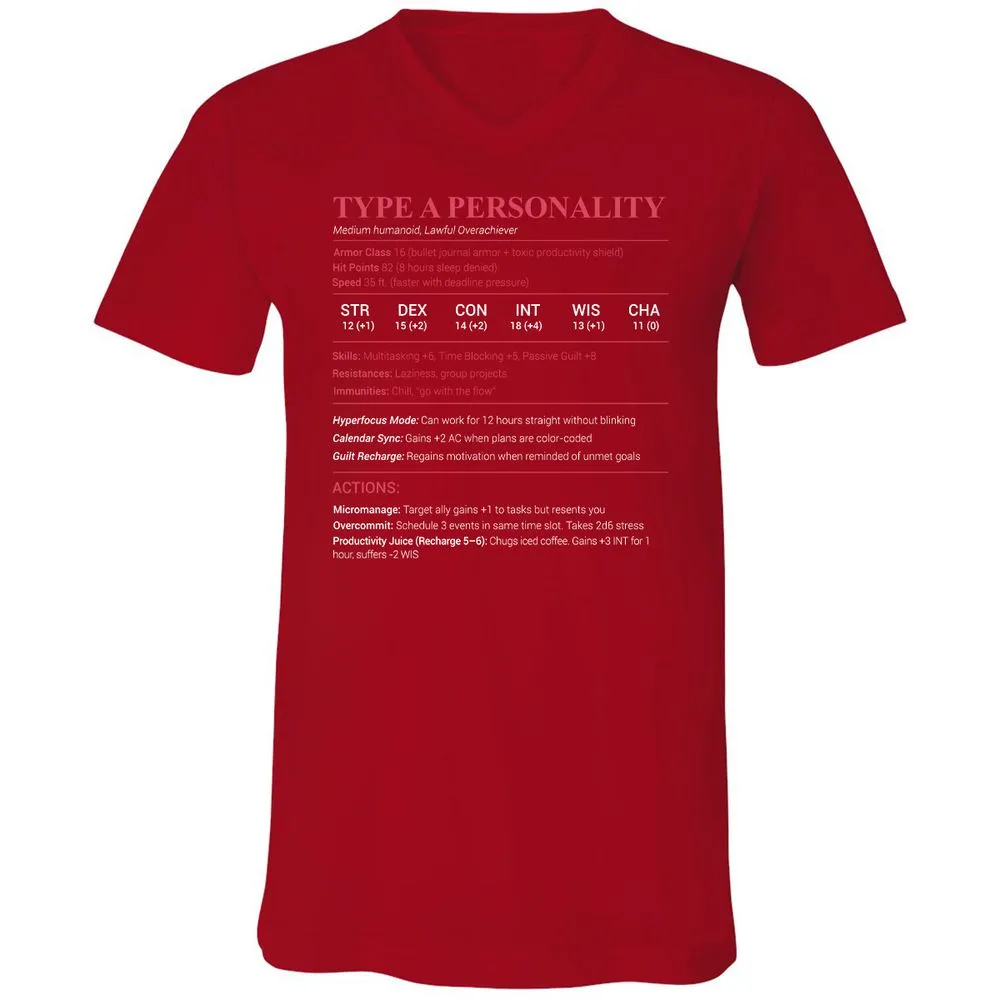 Type A Stats Unisex V-Neck T-Shirt - Heather Red - 16