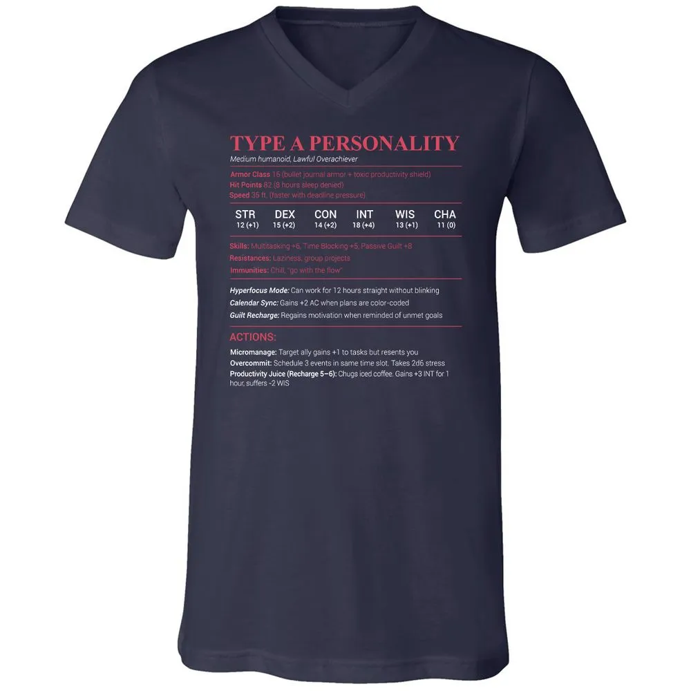 Type A Stats Unisex V-Neck T-Shirt - Deep Heather - 13