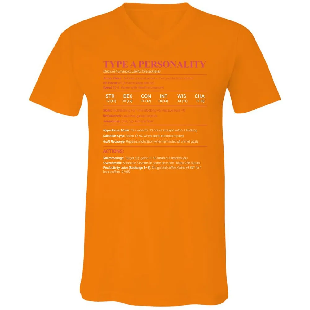Type A Stats Unisex V-Neck T-Shirt - Orange - 11