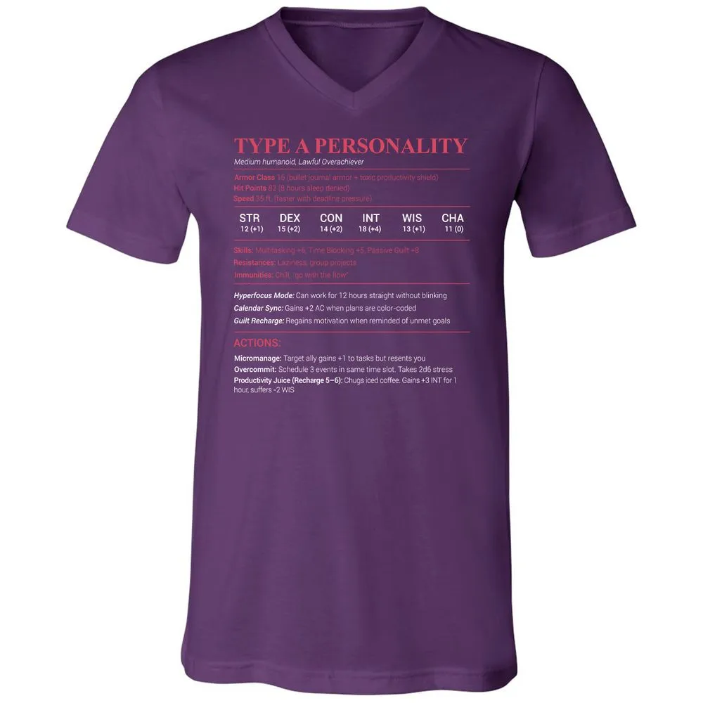 Type A Stats Unisex V-Neck T-Shirt - Team Purple - 9