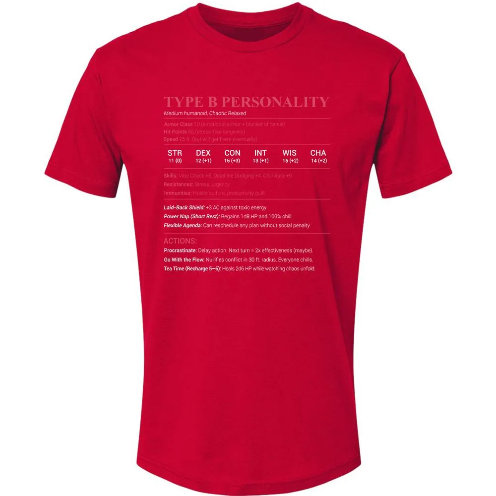 Type B Stats Premium Unisex T-Shirt - Red - 6