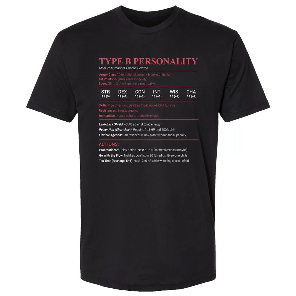 Type B Stats Premium Unisex T-Shirt - Black - 1