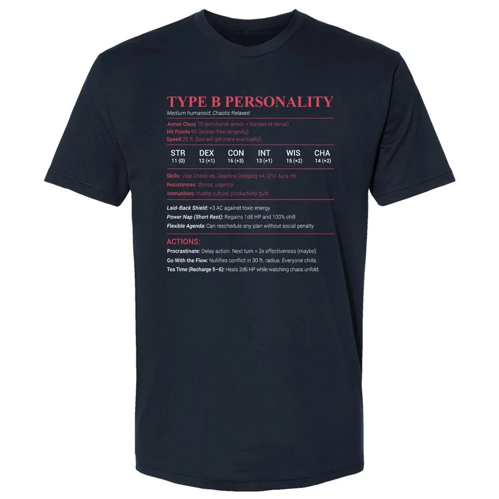 Type B Stats Premium Unisex T-Shirt - Midnight Navy - 2